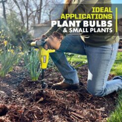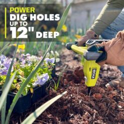 Expand your RYOBI 18V ONE+ System with the 18V ONE+ 3″ Handheld Auger. This auger has the power to dig through dirt, potting soil, and even tough surfaces like red clay, making planting your bulbs and small plants a breeze. With the ability to dig up to 70 12″ deep holes on a single charge, this auger is ready to work for as long as you are. Efficiently get the job done utilizing the forward and reverse operations while digging holes with the 3″ quick connect auger bit. For comfort, this auger is equipped with an overmold handle. Best of all, it is part of the RYOBI 18V ONE+ System of over 280 Cordless Products that all work on the same battery platform. This 18V ONE+ 3″ Handheld Auger is backed by the RYOBI 3-Year Manufacturer’s Warranty and includes P29016 18V ONE+ Handheld Auger, 3″ Auger Bit, and Operator’s Manual. Battery and charger sold separately.