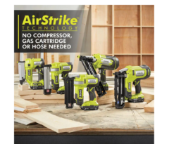 RYOBI introduces the RYOBI P326KN 18V ONE+ 16-Gauge Cordless AirStrike Finish Nailer with 1.5 Ah Battery and Charger.