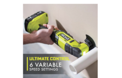 Expand your RYOBI 18V ONE+ System with the new and improved 18V ONE+ Multi-Tool. With increased power and up to 20,000 max OPM (Oscillations Per Minute) you can take on the most demanding applications. This Multi-Tool features the lowest vibration in it’s class, helping to reduce user fatigue and ensure precise accuracy. The adjustable speed dial gives the ability to make cuts in drywall, metal, wood, plastic, composite and many other materials, along with the ability to sand the finest details.
