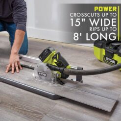 RYOBI introduces the 18V ONE+ Cordless 5-1/2 in. Flooring Saw with Blade and Extra 5-1/2 in. 24T Flooring Blade (1-Piece). This Flooring Saw is capable of making miter, rip, and crosscuts on Luxury Vinyl Tile (LVT), Luxury Vinyl Planks (LVP), laminates, and hardwood flooring. This saw allows for extended periods of continuous work by cutting up to 240 linear feet when paired with a 9.0 Ah battery (not included). It offers on-board storage for user convenience, while the integrated carry handle provides lightweight, cordless portability. Best of all, it is part of the RYOBI ONE+ System of over 280 Cordless Products that all work on the same battery platform. TBacked by the RYOBI 3-Year Manufacturer’s Warranty, the 18V 5-1/2 in. Flooring Saw includes a 24T thin kerf flooring blade, push stick, dust bag, blade wrenches, and operator’s manuals. Battery and charger sold separately. The included 5-1/2 in. 24-Tooth Flooring Blade (1-Piece) has a durable carbide construction that is great for cutting laminate and is a consumable item.