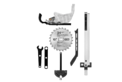 - Includes: (1) RTS12T Table Saw, Folding Stand and mounting hardware, (1) 10 in. blade, push stick, miter gauge, rip fence, guarding assembly, anti-kickback pawls, and an operator’s manual