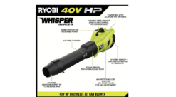 The battery is compatible with the RYOBI 40V system. The 40V HP WHISPER SERIES Jet Fan Blower is backed by a 5-year tool warranty.