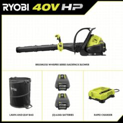 - Includes: Lawn and Leaf Bag, (2) RYOBI 40V 6.0 Ah batteries and rapid charger