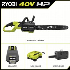 - Includes: RY405011 40V HP brushless 20 in. chainsaw, scabbard, combination wrench, carrying case and operator’s manual