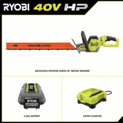 RYOBI RY40660 40V HP Brushless Whisper Series 26 in. Cordless Battery Hedge Trimmer with 2.0 Ah Battery and Charger