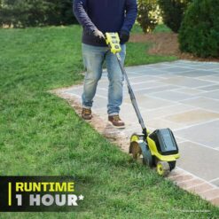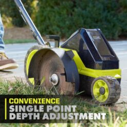 The RYOBI 40V HP Brushless 9″ Edger Kit delivers 2.5X more power, making this edger a true gas replacement without the maintenance and hassle. 40V HP technology combines a brushless motor, advanced electronics, and high performance lithium technology, to power through the toughest trenching around your driveways, sidewalks, and flower beds with 1 hour of runtime using a 40V 4Ah battery. This edger is equipped with a 3-wheel design, edger guide, and blade indicator to deliver cleaner and more precise edges. Conveniently customize the depth of your cuts from 0.5″ to 2.0″ with the 4-position depth adjustment. The adjustable rear wheel allows ease when edging along curbs, and the rotating handle is for comfortably walking beside or behind it. When it’s time to clean your edger, effortlessly remove any build up with the integrated debris cleaner, and for quick and easy blade change, utilize the spindle-lock. Once you’ve finished the job, recline the handles to lay flush with the blade and wheels for compact storage. Recharge your 40V 4Ah battery in less than 60 minutes with included 40V Fast Charger. Best of all, it is part of the RYOBI 40V system where any 40V battery works with any 40V product. This 40V HP Brushless 9″ Edger Kit is backed by the RYOBI 5-Year Manufacturer’s Tool Warranty, 3-Year Manufacturer’s Battery Warranty, and includes RY40706 40V HP Brushless 9″ Edger, OP40404 40V 4Ah Lithium Battery, OP408 40V Fast Charger, Blade Wrench, and Operator’s Manuals.
