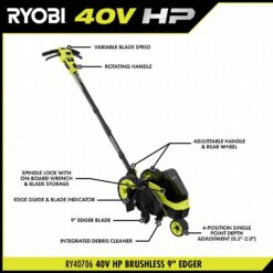 - Includes: RY40706 40V HP Brushless 9″ Edger, OP40404 40V 4Ah Lithium Battery, OP408 40V Fast Charger, Blade Wrench, and Operator’s Manuals