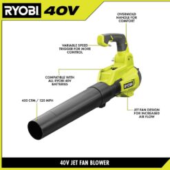 - Part of the RYOBI 40V System – Any 40V Battery Works With Any 40V Product