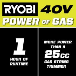 - Part of the RYOBI 40V System – Any 40V Battery Works With Any 40V Product
