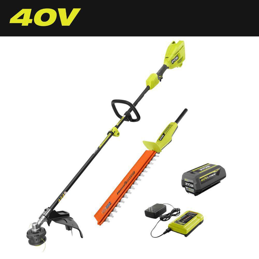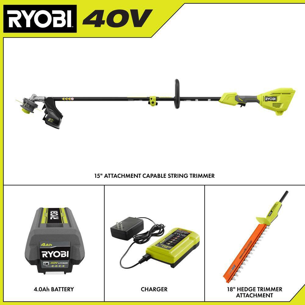 RYOBI RY40ST01K-RYHDG 40V 15 in. Expand-It Cordless Battery Attachment Capable String Trimmer & Hedge Trimmer with 4.0 Ah Battery and Charger