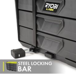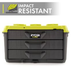 The RYOBI LINK Modular Storage System is revolutionizing the storage industry, enabling you to Organize, Access and Transport your life. The RYOBI LINK 3-Drawer Tool Box is designed to handle the toughest of situations with impact resistant material and a 40 lb. load capacity. Easily secure your items with the stow-away steel lock bar and secure locking point. The full extension slides provide smooth operation while the included Organizer Divider Set provides maximum organization, keeping small parts in their place. Seamlessly stack on to any RYOBI LINK Mobile Storage item. Best of all, it is part of the RYOBI LINK Modular Storage System line of products that use the same locking technology to seamlessly connect your mobile and stationary storage needs. Own your space with RYOBI LINK Modular Storage System.