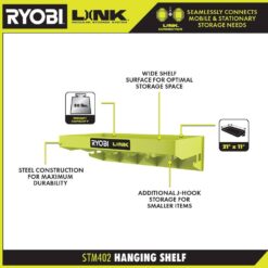 The RYOBI LINK Modular Storage System is revolutionizing the storage industry, enabling you to Organize, Access and Transport your life. The RYOBI LINK Hanging Shelf (2-Pack) is designed to maximize your storage space. The wide shelf surface and 6 J-hooks allow for maximum organization in tight spaces. The steel construction allows for a 50 lb. weight capacity. Best of all, it is part of the RYOBI LINK Modular Storage System line of products that use the same locking technology. Own your space with RYOBI LINK Modular Storage System.