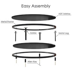 Treat your guests to a visual experience in your living room, this round coffee table can be a perfect choice. The modern chic frame makes it the perfect addition to any contemporary living space. Carefully selected manufactured wood and powder-coated metal legs with rust-resistant design ensure long-lasting use. The desktop is waterproof and easy to clean.