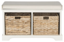 Getting ready to leave is a lot easier with the Safavieh Freddy Wicker Indoor Storage Bench. Featuring two removable, wicker baskets that are perfect for holding mittens, hats, scarves, and more, along with a comfortable, linen upholstered seat, you’ll love having a dedicated place to put on your shoes. Place this bench in your living room to hold books and magazines, or even in your master bathroom as a place to store extra towels. The pine construction is strong and durable and comes in your choice of available finishes.