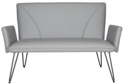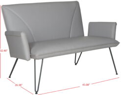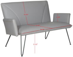 Save Money. Live Better. Safavieh Johannes Mid-Century Retro Modern Leather SetteeSalute the Fifties and Sixties with this luxe retro modern settee that recalls the best of mid-century design. Crafted of handsome grey PU leather upholstery and open flared arms, this piece has blue-grey powder-coated hair pin legs for a fashion edge.