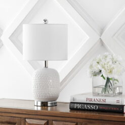 Inspired by contemporary sculpture, this artistic Tucana Table Lamp refreshes any living room or bedroom. Often used in pairs, Tucana’s luxurious texture is highlighted by a bright white finish, perfectly complemented by a chic silver base with a built-in USB port for no-fuss charging. With durable construction this table lamp by Safavieh is the perfect addition to your home for a stylish designer upgrade. So perfect that you will need to purchase more than one!