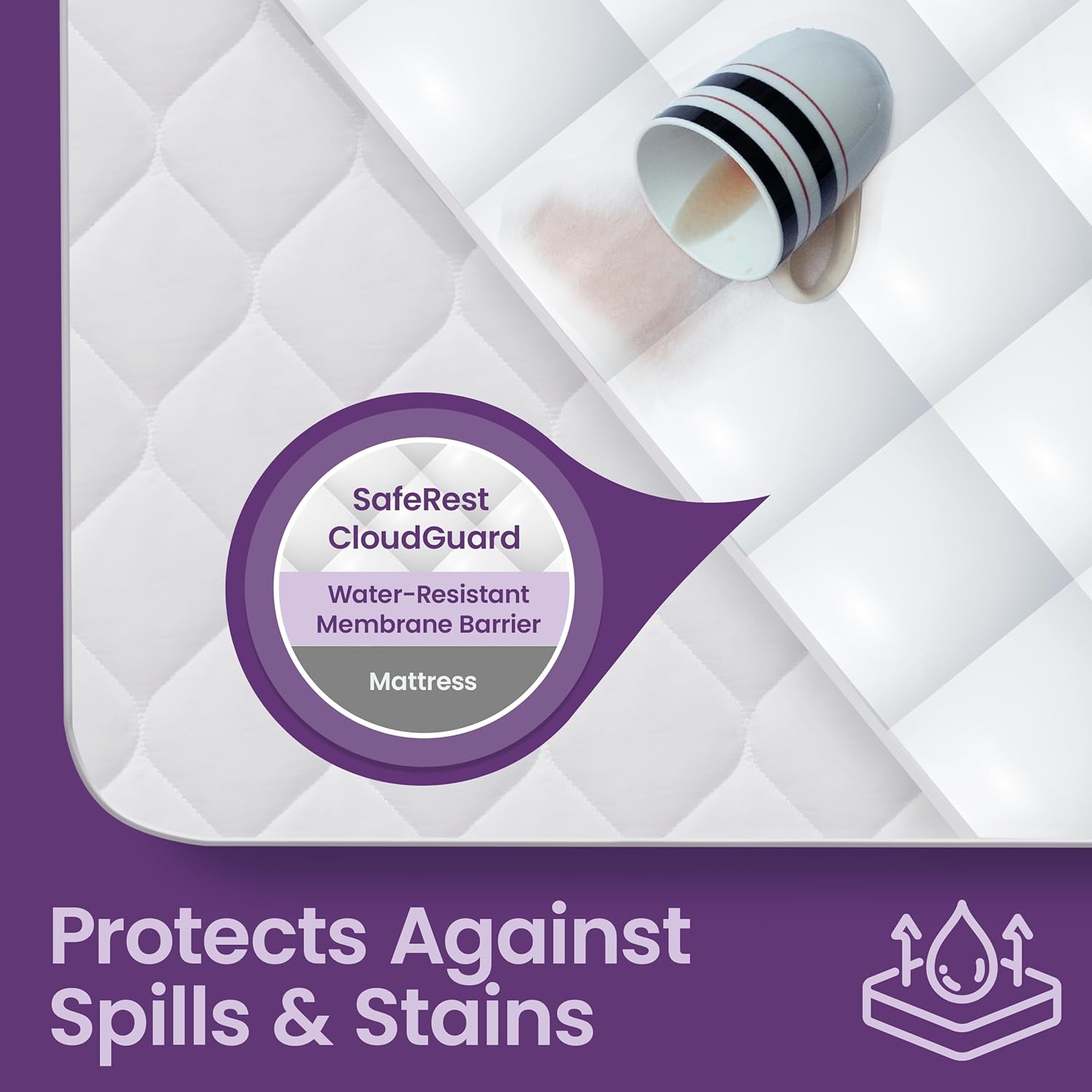 SafeRest CloudGuard – Full Size Hybrid Mattress Protector & Pad (Extra Padded) – 100% Waterproof Quilted Pillow Top Mattress Cover – Thick, Plush & Fitted Mattress Topper for Bed