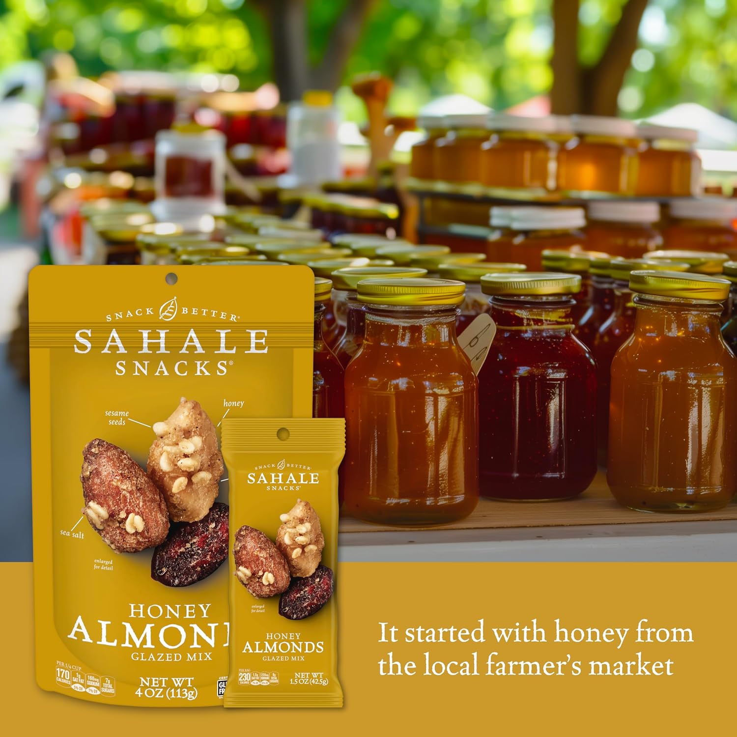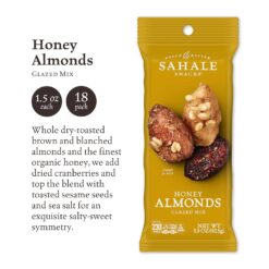 Sahale Snacks Honey Almonds Glazed Mix, 1.5 oz Grab & Go Bags (18 Packs) – Dry-Roasted Deluxe Mixed Nuts with Tart Cranberries & Madagascar Vanilla – Non-GMO, Kosher, & Certified Gluten-Free Snacks