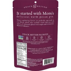 - Dry-roasted pecans and walnuts mixed with cherries, apples, and a touch of cinnamon for a snack mix inspired by pecan pie