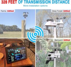 - 【328 Feet Wireless Transmission, Simple Installation】With a range of up to 328 feet, this weather station ensures reliable data transfer without wiring. Easy to install, it’s perfect for personal and professional use