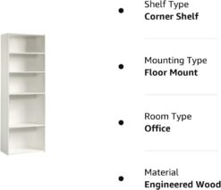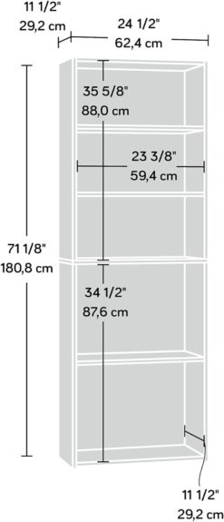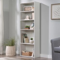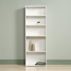 Sauder Beginnings 5 Bookcase/Book Shelf, L: 24.57″ x W: 11.50″ x H: 71.18″, Soft White finish