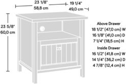 A bedroom just isn’t complete without the perfect bedside companion. Give your favorite snoozing room the finishing touch it needs with this nightstand from the Costa collection. This nightstand with drawer offers a spacious top surface that provides you with the ideal amount of space for all your bedside needs – like a lamp, your alarm clock, a refreshing cup of water and your smartphone. This nightstand with open storage features a cubbyhole opening for easy access storage of items like your favorite book and the TV remote. This beside table with storage also features a drawer that glides on metal runners and safety stops. It’s ideal for storing your glasses, phone charger, and more. Framed, slat-front detailing provides a distinct aesthetic. This single drawer nightstand can accommodate optional Hidden Wireless Qi Charger by Eggtronics 425905 (sold separately – visit sauder.com for more information). Quick and easy assembly with a T-lock drawer system and slide-on moldings helps assist you in putting together your new nightstand. A Chalked Chestnut® finish gives a timeless feel that instantly revamps your bedroom.