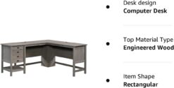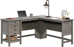 Sauder Cottage Road L-Desk, L: 65.12″ x W: 58.66″ x H: 29.76″, Mystic Oak finish