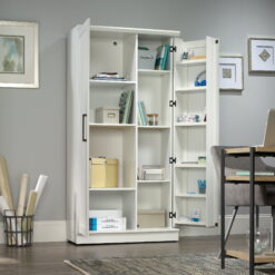 Sauder HomePlus 71″ Tall 2-Door Multiple Shelf Wood Storage Cabinet, Soft White Finish