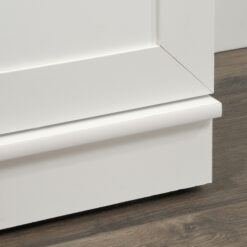 Need a solution for your clutter and chaos? Check out this storage cabinet from the HomePlus collection. Behind each framed panel door is one fixed shelf and two adjustable shelves to store anything from office supplies to towels to canned goods! This large, white storage cabinet also includes a swing-out storage door with three adjustable and three fixed shelves for additional storage and organization, with optional customizable storage options with the adjustable shelves. The swing-out door of this kitchen storage cabinet can be affixed to either the left or the right side, depending on your needs. Never worry about storing items that are too large, or too small. Cord access through the back panel allows a convenient path for cords. Adjustable base levelers ensure your pantry cabinet will be level, even if the floor is not. Finished in a sleek Soft White®, this nifty two door storage cabinet makes a great addition to any room in your home.