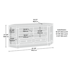 Two adjustable corner display shelves for flexible storage options, Drawers with metal runners and safety stops feature patented T-lock assembly system, Split Oak finish, Two adjustable shelves hold audio/video equipment, Enclosed back cut-outs allow a convenient path for cables and cords, Accommodates up to a 60″ TV weighing 95 lbs or less for optimal viewing pleasure