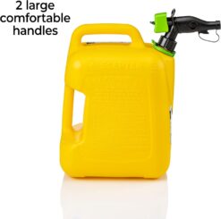 - EASY TO POUR GAS CAN – 5-gallon fuel container with additional rear handle for easy refilling of lawnmowers, chainsaws, yard tools, recreational vehicles, ATVs, motorcycles, and other gas-powered equipment