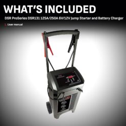 - Versatile 6v + 12v Battery Charger – The DSR131 offers 250-amp jump starting for quick 12 volt battery charging + 125-amp jump starting for 6-volt batteries.