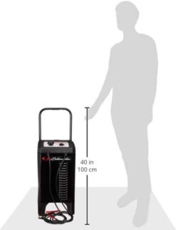 - Heavy-Duty Construction: With a sturdy, built-tough case and heavy-duty clamps, this wheeled battery charger and jump starter will stand up to frequent use; Retractable handle for easy storage