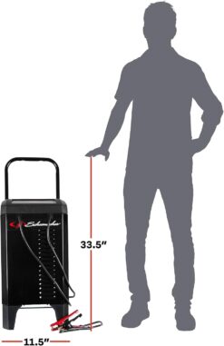 - Built-In Diagnostics: The Schumacher Electric SC1309 Fully Automatic Wheeled Jump Starter and Battery Charger features a built-in battery and alternator tester that determines charge level and helps diagnose electrical problems