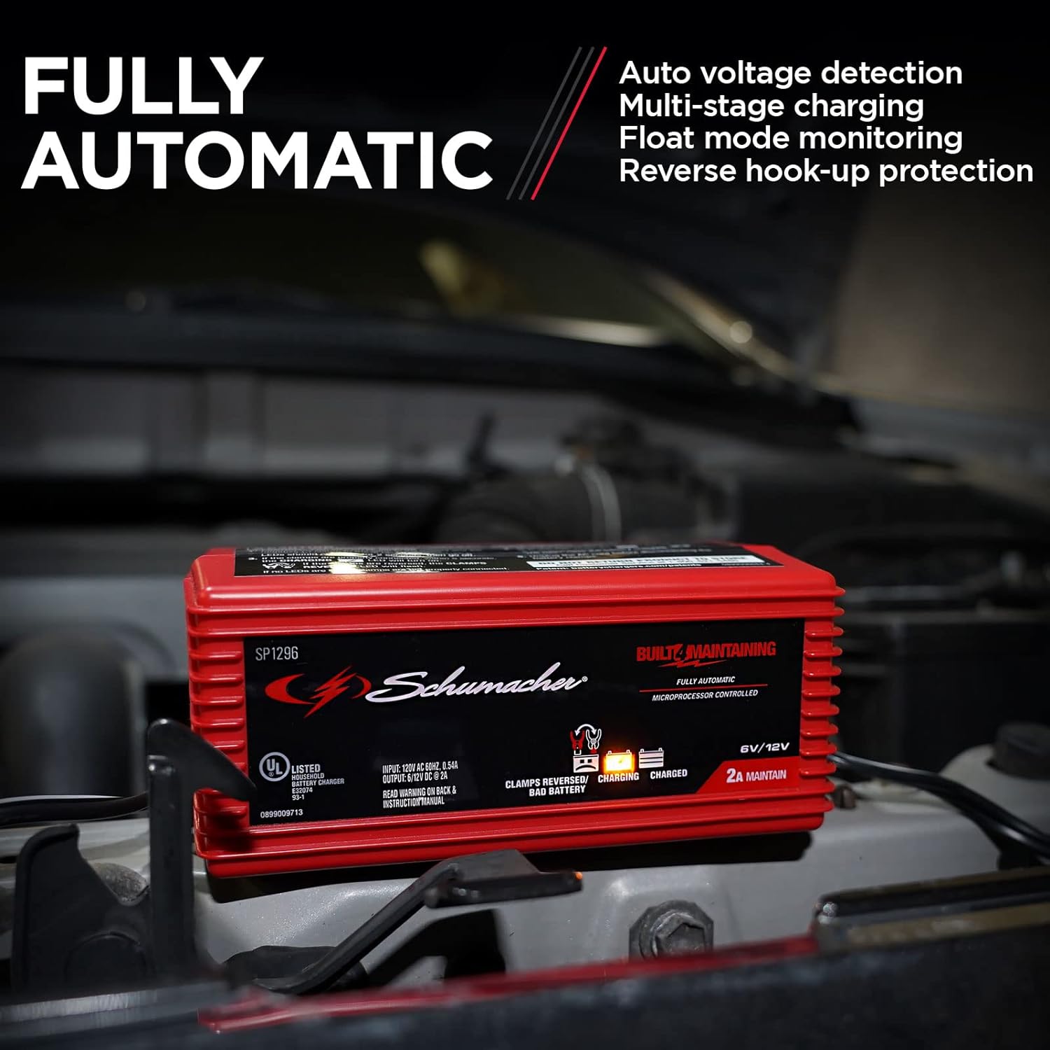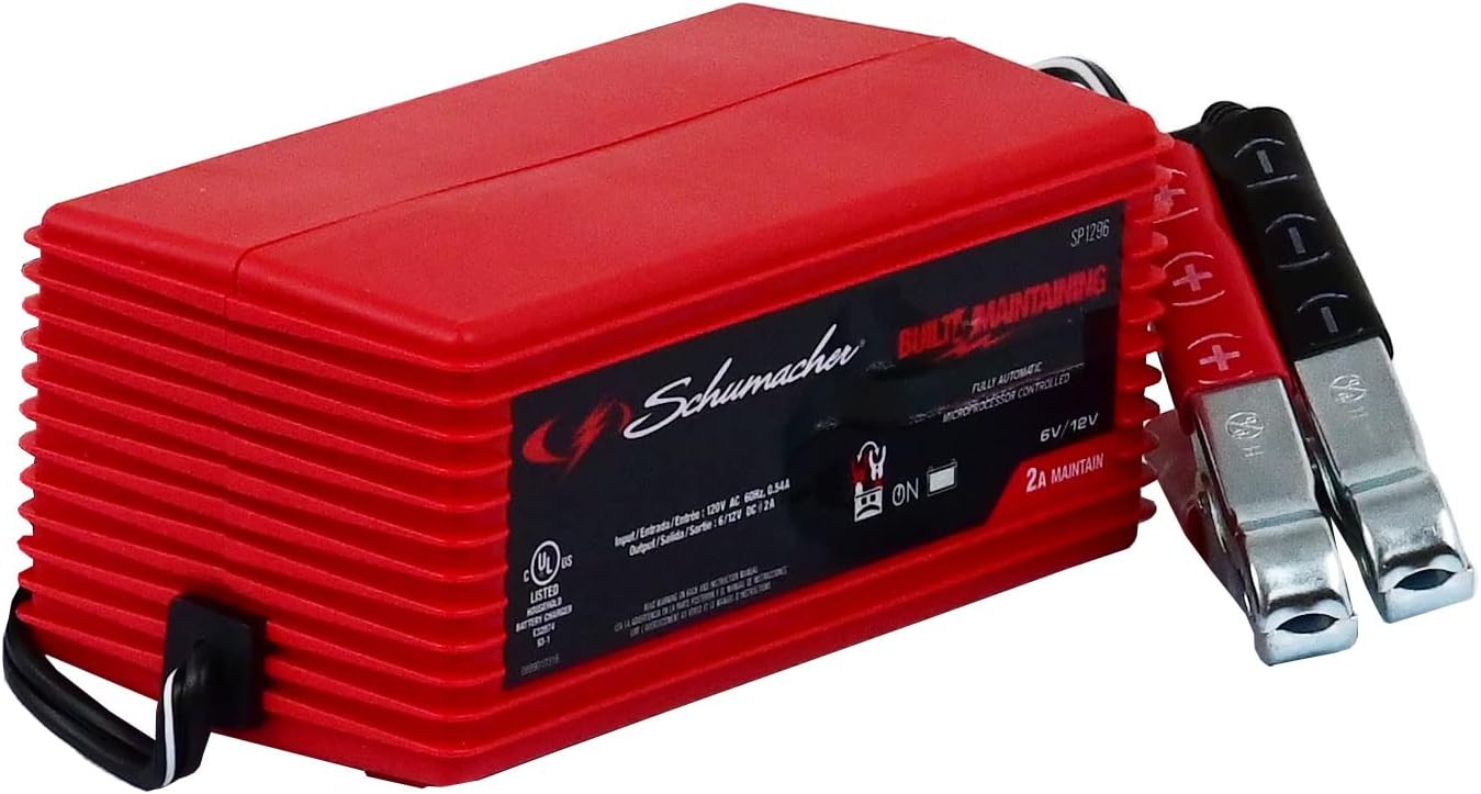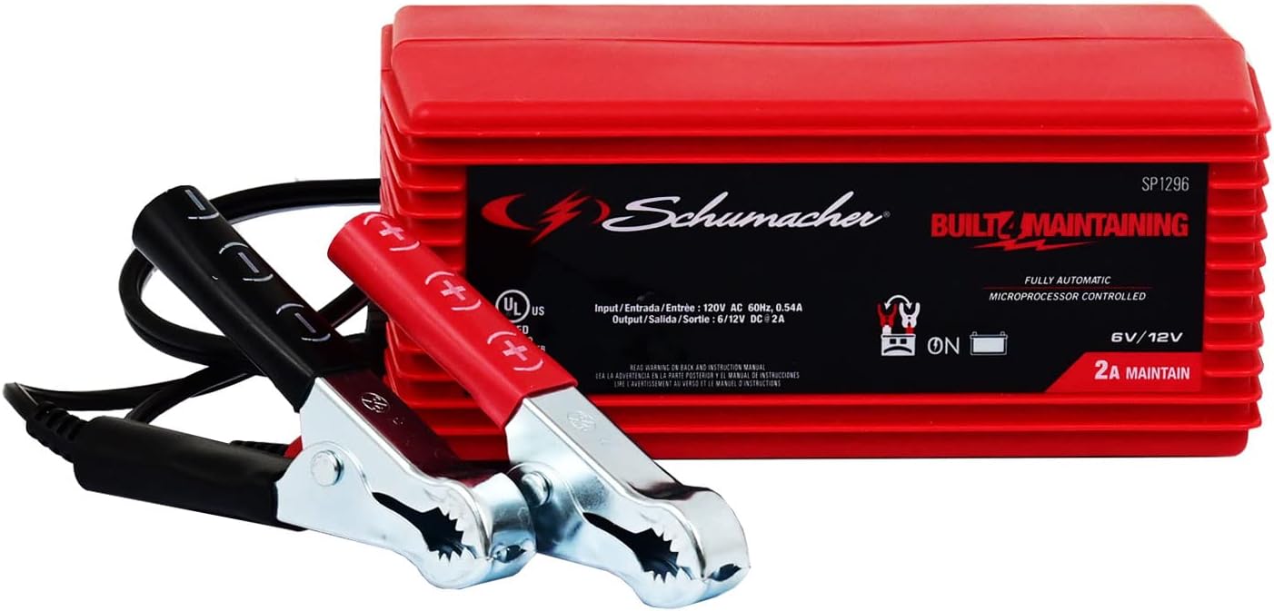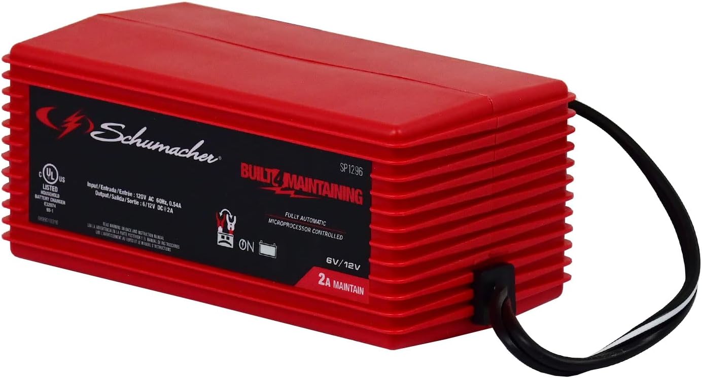 Schumacher SP1296 Fully Automatic Battery Charger and Maintainer – 2 Amp, 6V/12V – For Car, Boat, and Power Sport Batteries