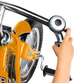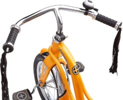 - Take to the streets in style with mustache style cruiser bars and a classic bike bell. Flowing fabric tassels make this a great gift for kids who love classic biker style