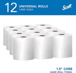 Scott® Essential Universal High-Capacity Hard Roll Towels (01000), with Absorbency Pockets™, 1.5″ Core, White, (1,000’/Roll, 12 Rolls/Case, 12,000’/Case)