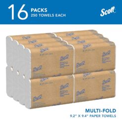 Scott® Multifold Paper Towels (01840), with Absorbency Pockets™, 9.2″ x 9.4″ sheets, White, Compact Case for Easy Storage, (250 Sheets/Pack, 16 Packs/Case, 4,000 Sheets/Case)