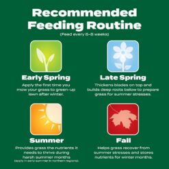 - Apply this fertilizer plus iron supplement to any grass type in the spring, summer, or fall