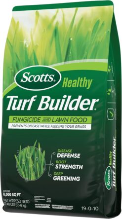 - Scotts Healthy Turf Builder Fungicide and Lawn Food contains a broad-spectrum and systemic fungicide for prevention and control of listed lawn diseases and lawn food to help your lawn recover from stresses