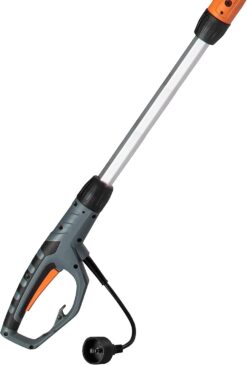 - Plug-in pruning chainsaw that requires no gas; A great alternative to gas pole saws for tree trimming