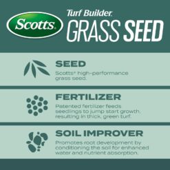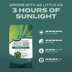Scotts Turf Builder Grass Seed Dense Shade Mix with Fertilizer and Soil Improver, Grows With Little Sunlight, 5.6 lbs.