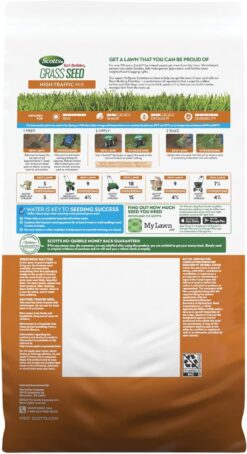 - The redesigned Scotts Turf Builder Grass Seed High Traffic Mix self-repairs to withstand wear and tear and features Root-Building Nutrition for a stronger lawn