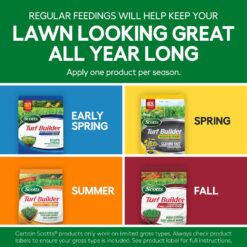 - Includes Scotts Turf Builder Halts Crabgrass Preventer with Lawn Food, Scotts Turf Builder Weed & Feed3, Scotts Turf Builder SummerGuard Lawn Food with Insect Control, and Scotts Turf Builder WinterGuard Fall Lawn