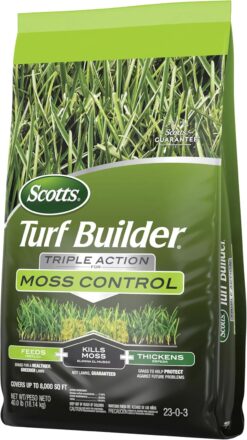 - Scotts Turf Builder Triple Action for Moss Control kills moss without harming your lawn