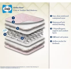 The Sealy Ortho Rest Crib and Toddler Mattress offers 150 heavy-gauge steel coils plus hypoallergenic support layers to provide a firm, yet durable sleeping surface. A waterproof cover and binding protect the mattress and make clean-up a breeze. Sealy is the #1 brand of crib mattress in America. With dependable durability and comfort, it’s no wonder more babies sleep on a Sealy than any other crib mattress brand.