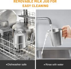 - EASY TO OPERATION & CLEAN: Just press the button in the middle of the milk froth maker to make lattes, hot chocolate, milk froth, etc. The foam maker for coffee is constructed with scratch-resistant material and stainless steel, allowing for easy maintenance and hygienic cleaning