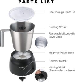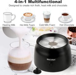 Secura Detachable Milk Frother, 17oz Electric Milk Steamer Stainless Steel, Automatic Hot/Cold Foam and Hot Chocolate Maker with Dishwasher Safe, 120V