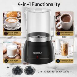 Secura Detachable Milk Frother and Steamer, 17oz Electric Milk Warmer 4-in-1 Hot/Cold Foam Maker for Latte, Cappuccinos, Macchiato, Hot Chocolate, Glass Milk Jug Dishwasher Safe