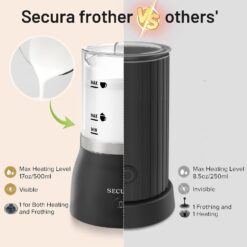 - Quiet & Quickly Froth and Warm: Secura milk frothers quietly and quickly, creating delicate and creamy milk foam in 2-3 minutes. Please be sure to select the heating function in order to create froth at the ideal temperature of 140°F – 160°F.